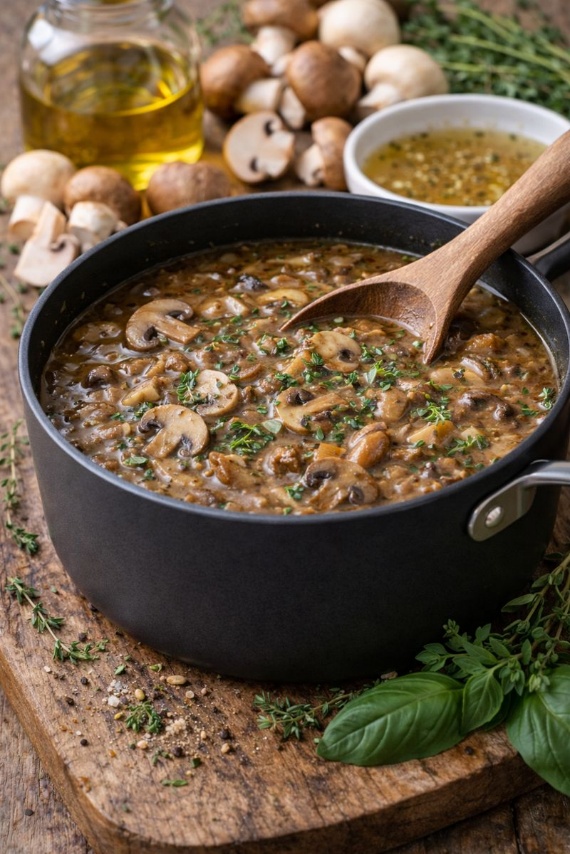 Voeg de gesneden paddenstoelen toe en bak tot ze hun vocht loslaten.